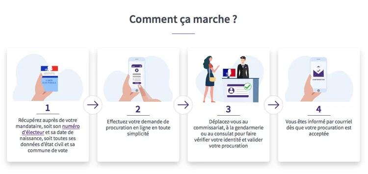 - Votre demande de procuration est validée, une attestation vous est transmise par courriel, et votre mandataire n’a plus qu’à se présenter dans votre bureau de vote pour y déposer votre vote par procuration.