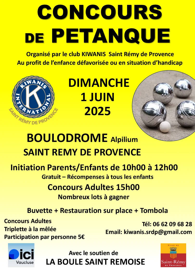 Boulodrome municipal Av. du Maréchal-de-Lattre-de-Tassigny, Saint-Rémy-de-Provence, France10h à 12h : initiation parents/enfants qui sera récompensée [...]